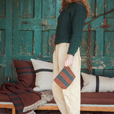 The Juniper mini pencil case combines a warm merlot brown base with two broad stripes of spruce green , creating an elegant and natural look. Made from a sustainable blend of linen and wool , this pencil case feels wonderfully soft thanks to its washed finish. Compact and practical, it's perfect for stylishly storing your small essentials!