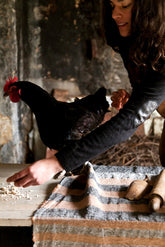 The Multicloth Small Black Stripe combines minimalist elegance with ultimate versatility . The subtle black stripes on a neutral background give the rug a modern, timeless look that fits effortlessly into any interior.