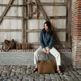 Bring a touch of natural warmth to your day with the Miles Shoulder Bag. This bag, characterized by a deep, warm oak color, is more than just an accessory; it's a statement of subtle luxury. The robust 100% linen canvas feels surprisingly soft thanks to the washed finish, while the refined blue-grey and off-white stripes give the bag a playful and timeless touch. The snap closure ensures practicality and security, perfect for an active, modern lifestyle.