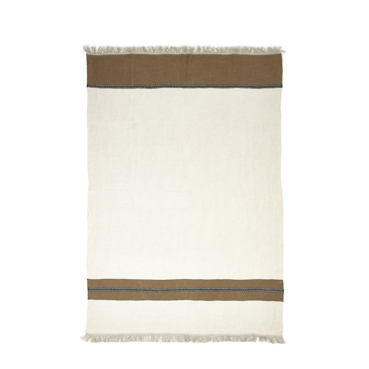 The unique design with two ginger, black and ivory stripes, both at the top and bottom of the blanket, creates a playful yet refined look.