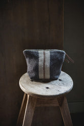 The Luc mini pencil case exudes pure refinement with its warm gray base , subtly finished with off-white and copper stripes . The combination of linen and wool creates a soft, luxurious texture, while the washed finish gives it a casual, timeless character. A stylish and practical must-have!