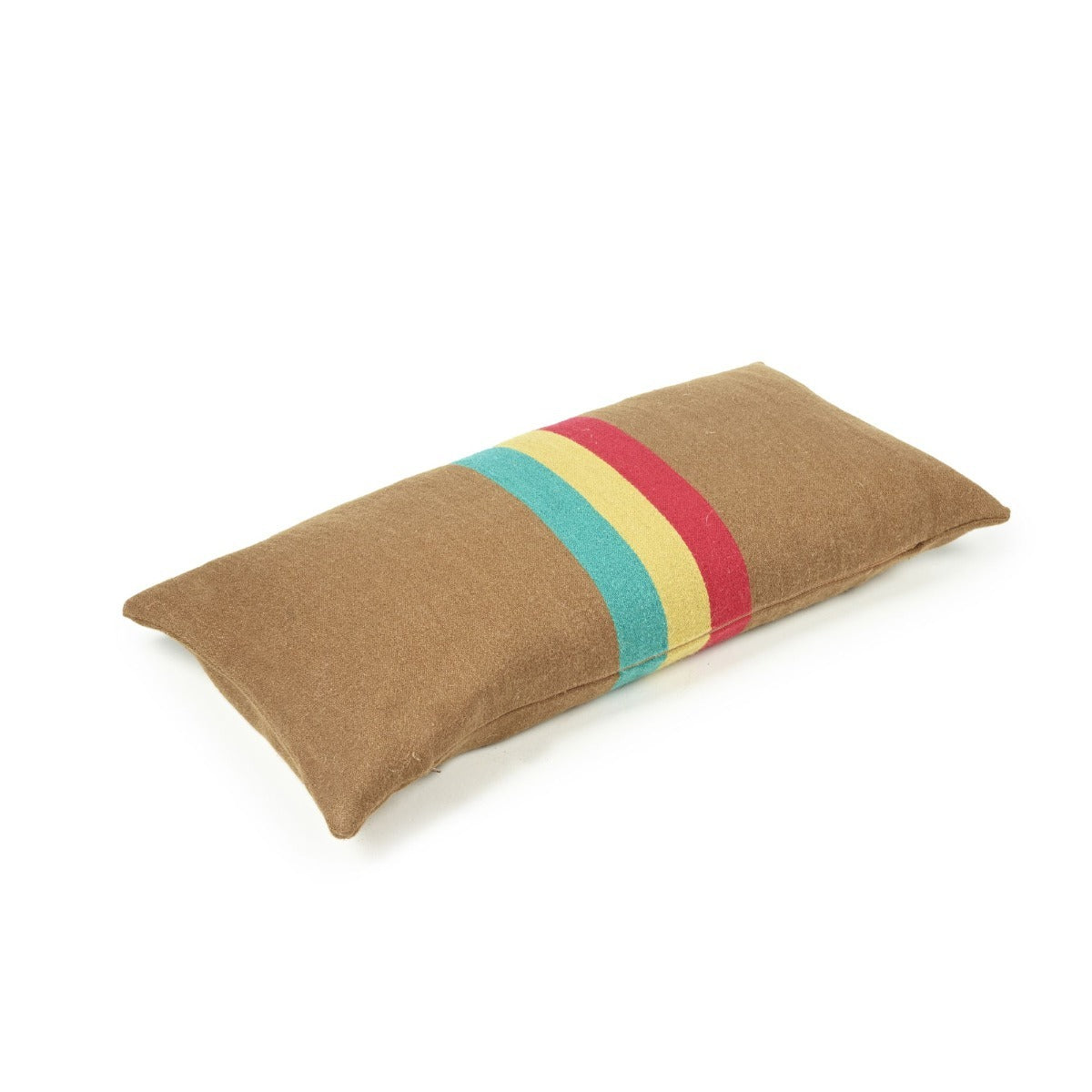 The Manitoba cushion cover combines a neutral background with playful stripes in red, green, and mustard yellow , creating a subtle retro look with a modern twist. The warm, natural colors bring ambiance and character to any interior.