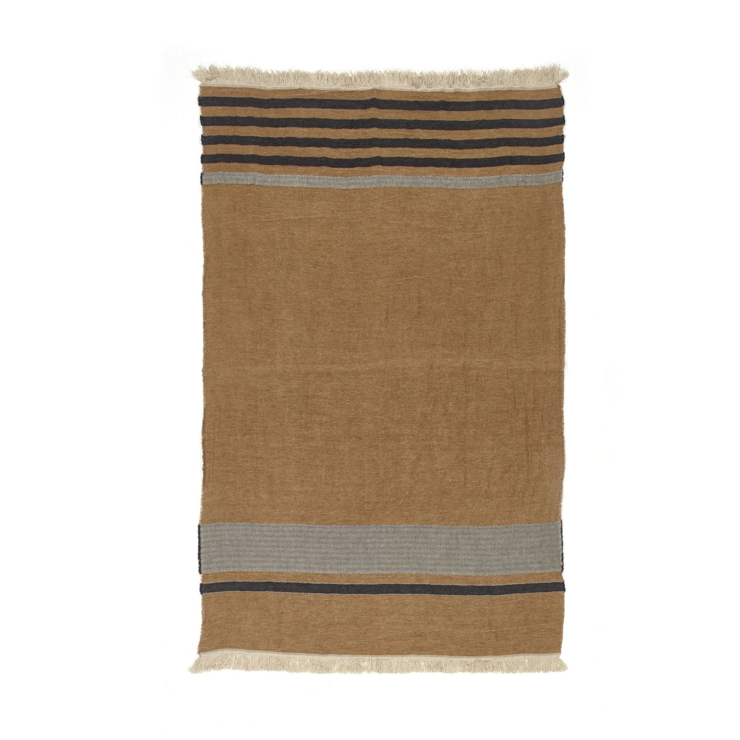 The Multicloth Nairobi brings a touch of rustic elegance to your interior and daily routine. With its warm earth tones and subtle stripes, it exudes a timeless and authentic charm . This 100% linen rug with a washed finish feels wonderfully soft and has a casual, luxurious look.