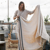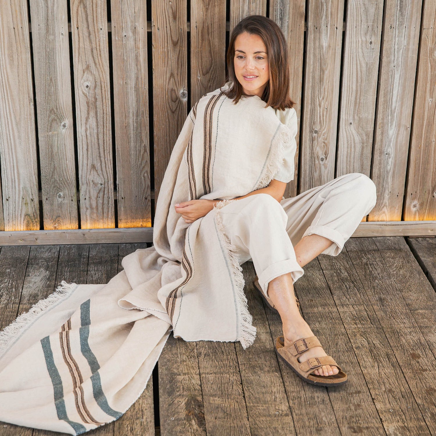 Experience the perfect blend of style and functionality with the Multicloth Tinos . This 100% linen blanket with a washed finish feels wonderfully soft and has a natural, rustic look. Thanks to the sateen weave , it's not only beautiful but also extra absorbent , making it ideal as a beach towel, sauna towel, or lightweight blanket.